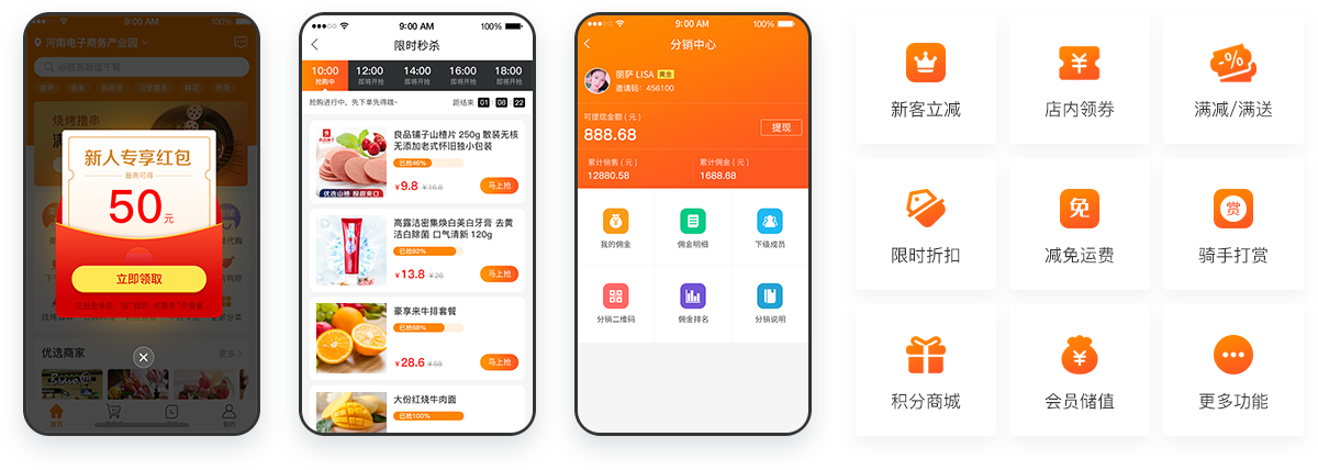 光合同城O2O係統用戶端不僅給客戶帶來優質的購物體驗,更以用戶的營銷需求為出發點,滿足諸多特色功能