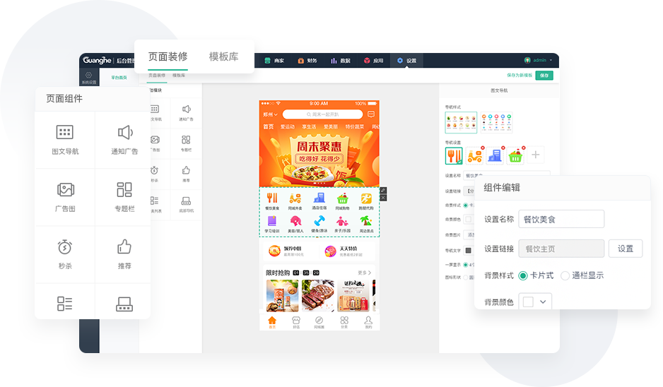 平台可根據運營需求,可無限添加行業頻道、每個頻道主頁都支持自定義裝修、可視化編輯操作輕鬆簡單